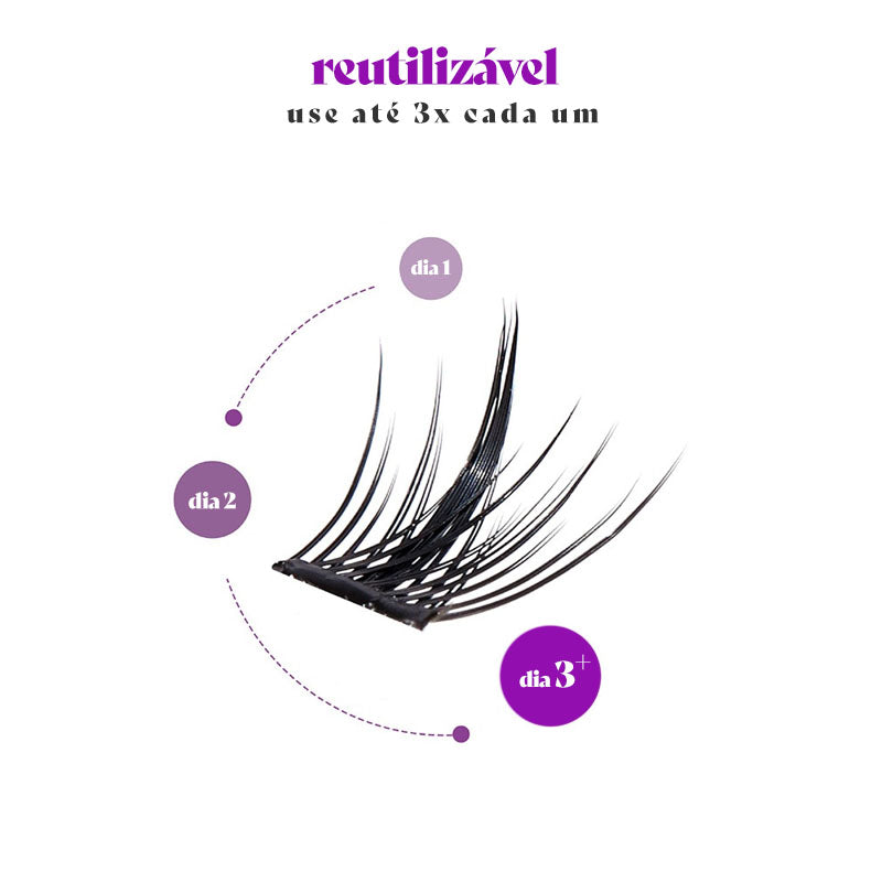 Além de práticos, os cílios InstaWink podem ser reutilizados em até 3x cada "tufinho", assim você fica linda várias vezes com o mesmo par e ainda economiza.