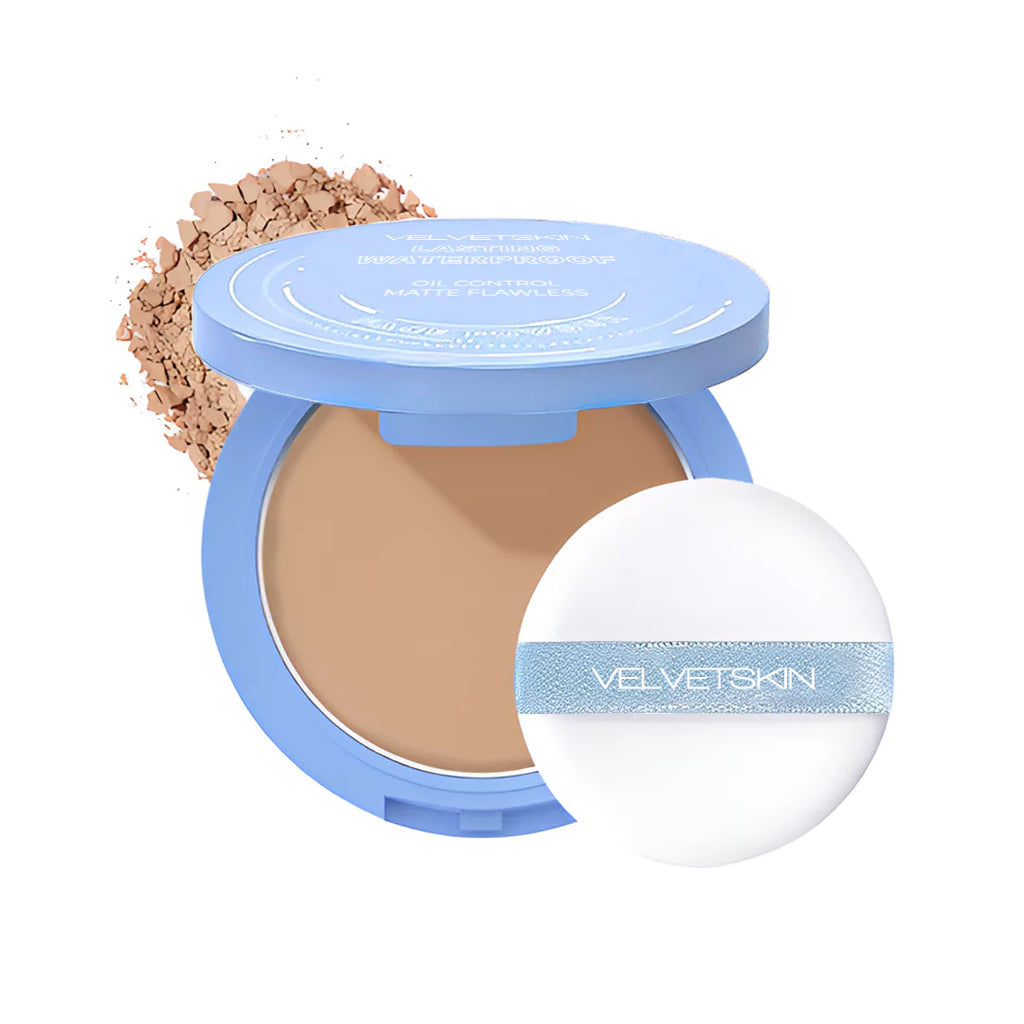 VelvetSkin é um pó compacto de alta performance, à prova d’água, que controla o brilho excessivo da pele, suaviza imperfeições e mantém sua maquiagem intacta mesmo nos dias mais corridos. Ideal para todos os tipos de pele, ele entrega um acabamento natural, matte e sem marcas.